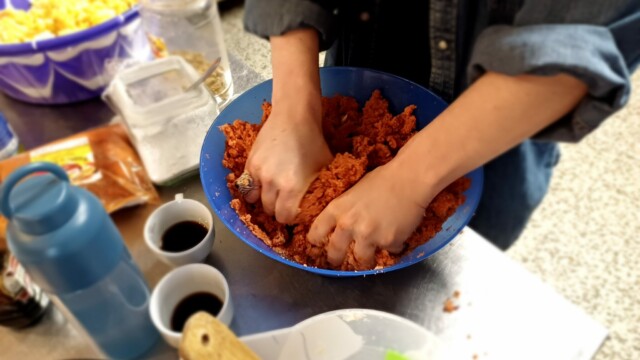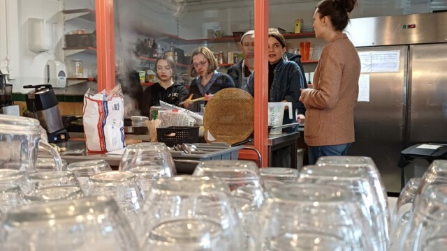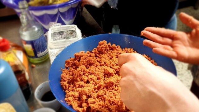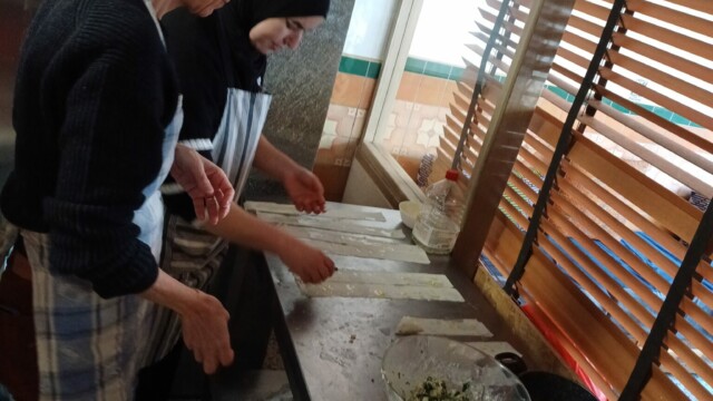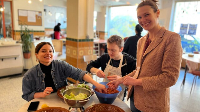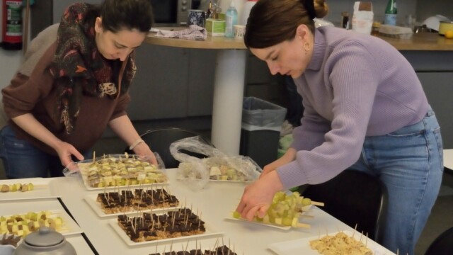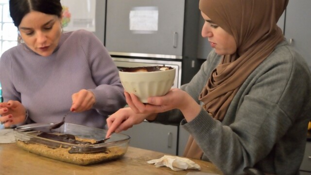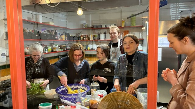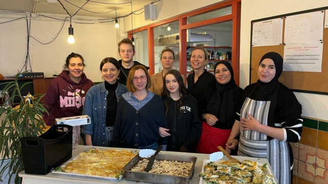 L’apprentissage d’une langue ne se fait pas seulement en cours de français, il peut se vivre dans des activités concrètes! Porté par nos cheffes Estelle et Tijana, le projet « La baraque aux délices » a ainsi pour but d’offrir à des personnes de notre quartier de succulents repas préparés par nos participantes et participants. Tous les plats sont des spécialités des membres de l’équipe de « La baraque aux délices » et viennent donc de divers horizons. Les différentes recettes ont été retranscrites en classe et servent de base à l’élaboration des menus. Notre équipe, dirigée par Tijana et Estelle, est composée de personnes fréquentant les cours d’alphabétisation et de français langue étrangère, mais est aussi renforcée ponctuellement par des membres de l’équipe du CSB.